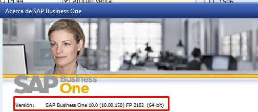 Yo tengo la version : SAP Business One 10.0 (10.00.150) FP 2102 (64-bit)