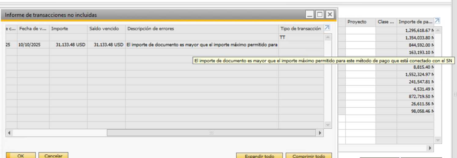 hola buen dia. tengo SAP B1 Version 10 para Mexico, al usar el asistente de pagos tengo este error
