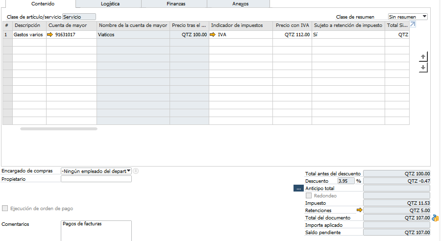 Todo bien pero cuando se realiza la carga el sistema me coloca un descuento y esto es porque algo no cuadra, pero revisando la plantilla todo lo tengo correcto, (según yo), agradeceria su apoyo en me indicaran en donde esta mi error en las plantillas, les adjunto imágenes de como se esta cargando la plantilla y como se muestra ya cargada en SAP.