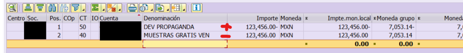 Necesito su ayuda ya que tengo un error por lo que al generar mi documento dontable de mi pedido de devolucion desde la VF02, pero los signos estan erroreos (La cuenta de Muestra debe de ser negativo (50) y la Devolucion d epropaganda debe corresponder a un signo positivo “40”), revise la VKOA las cuentas estan correctas y asignadas correctamente, en los esquemas de calculo en la V/08 estan bien asignados las cuentas, a que se debe este mal ajuste, sera un ajuste por parte de FI o de SD.