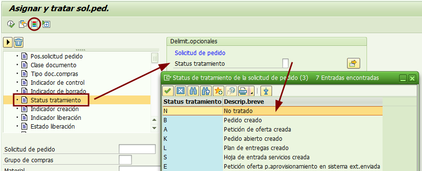 Pones estas opciones, entonces listarás todas las solicitudes de pedido que no tienen tratamiento alguno, y ya ahí, te toca empezar a manipularlas masivamente vía MASS:
