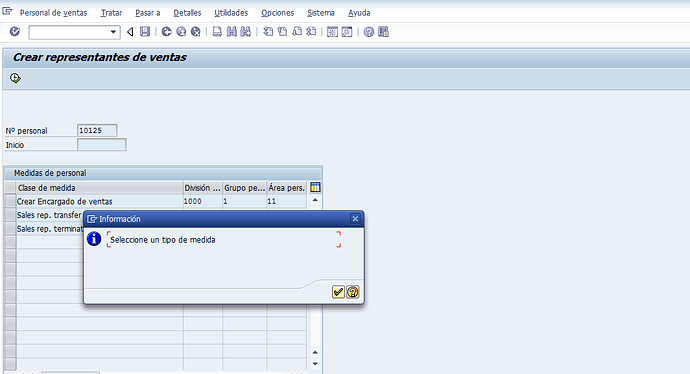 Buenos dias, estoy tratando de Crear un representante de ventas y me sale la siguiente advertencia.