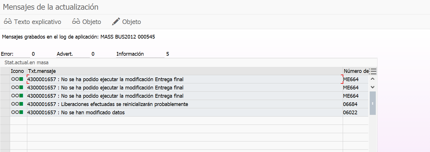 Sigue mostrando cantidades pendientes (en ME2N, ME80FN, MB5T, etc.)