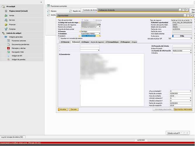 En SAP B1 (BO) tengo un error al que un usuario quiere cambiar el propietario de una oportunidad S/autorización p.modificar campo prop. [Mensaje 131-133] Ahora el tiene permiso completo en propiedad de datos tanto en Equipo y Sucursal, la usuario dueña de la oportunidad esta en misma sucursal mismo equipos. Por favor solicito su valioso apoyo .