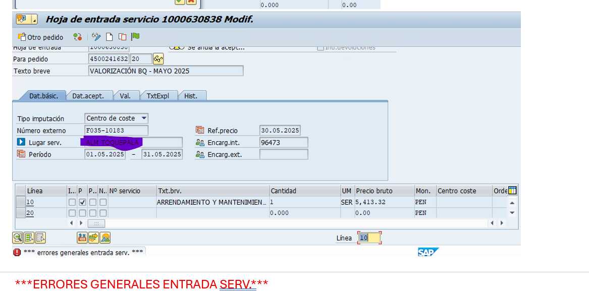 Se guardó una HES sin imputación. No permite anular. Pero si registró asiento contable. Error SE509