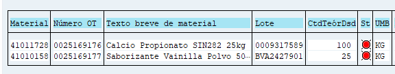 Filtrar por número de OT, almacén, fecha, material, etc.