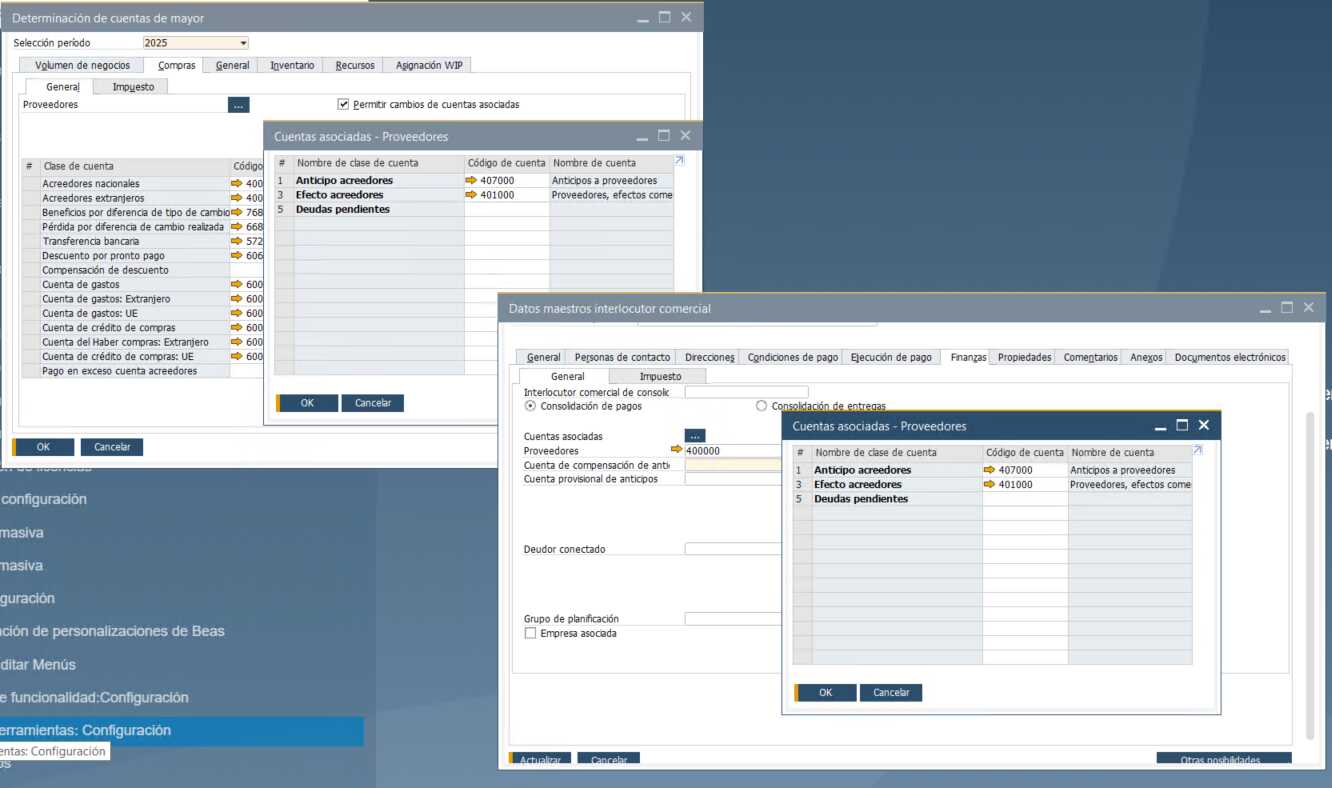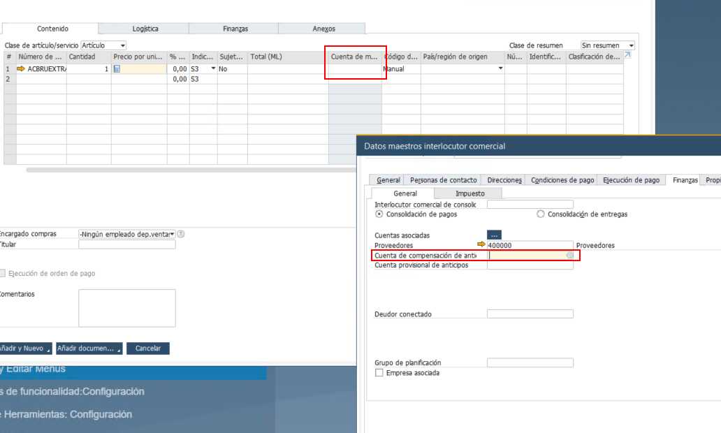 Necesito configurar la cuenta 407000 en el interlocutor comercial, al realizar un anticipo de proveedores, quiero que me contabilize en esta cuenta. Pero no me permite informarla, no me aparece: