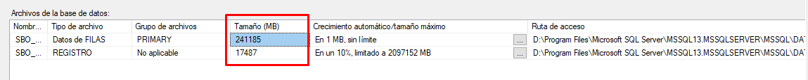 Hoy dia , esta de esta manera el tamaño de la BD y el LOG: