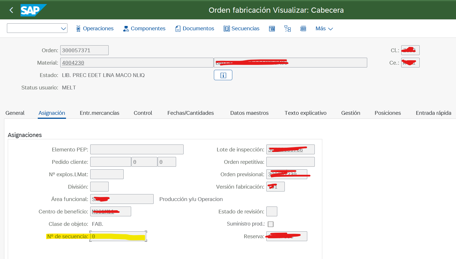 En la orden de fabricación (CO01, CO02) existen campos de usuario en la pestaña de Datos adicionales (Datos adicionales 1/2).