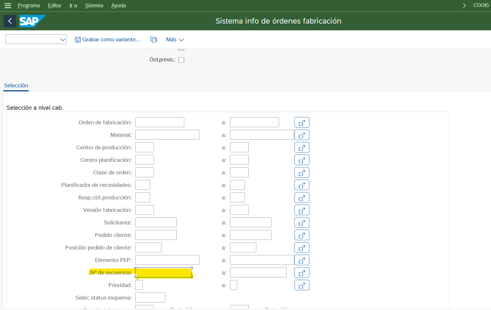 Luego, en COOIS, podés filtrar por grupo de órdenes.